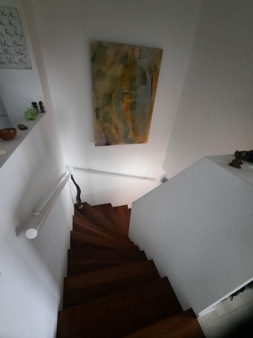 Diese Wohnung besticht durch ihre besondere Ausstattung und Lage - die großzügigen Fensterfronten bringen den zur Wohnung gehörenden Garten von ca. 184 m² in die Innenräume hinein. Die Wohnung wird über die obere Ebene betreten. Dort befindet sich, vom Vorraum aus zu begehen, ein gartenseitig gelegenes Schlafzimmer mit begehbarem Garderobeschrank. Dieses Schlafzimme r war ursprünglich in zwei Räume getrennt. Weiters befindet sich auf dieser Ebene das moderne Bad mit Wanne, separater Dusche und WC. Von diesem Vorraum aus gelangt man über eine Stiege direkt in den Wohnraum mit integrierter offener Küche und Ausgang auf die Terrasse sowie in den großzügigen Naturgarten . Dieser Garten ist eine über die Jahre entstandene Idylle mit unglaublich viel verschiedenen Pflanzen, wie u.a. Himbeere, Ribisel, Stachelbeere, japanische Honigbeere - um nur einige davon zu nennen. Dazu eine Felsenbirne, ein Apfelbaum, ein kleiner Teich mit Seerosen und ein Kräutergarten. Zu dieser Wohnung gehörig ist Parkplatz sowie ein Kellerabteil Die Beheizung erfolgt mittels einer Zentralheizung, als Zusatzheizung dient ein Holzofen im Wohnraum. Das an den Wohnraum angrenzende Gäste-WC wird als Abstellraum genutzt, ist jedoch wieder als WC gestaltbar. Alle Böden sind Holzböden, die moderne Einbauküche verbleibt in der Wohnung samt Elektrobackofen ( Marke Neff) Keramikkochfeld (Bora)mit Abzug, Anschluss für Geschirrspüler vorhanden.